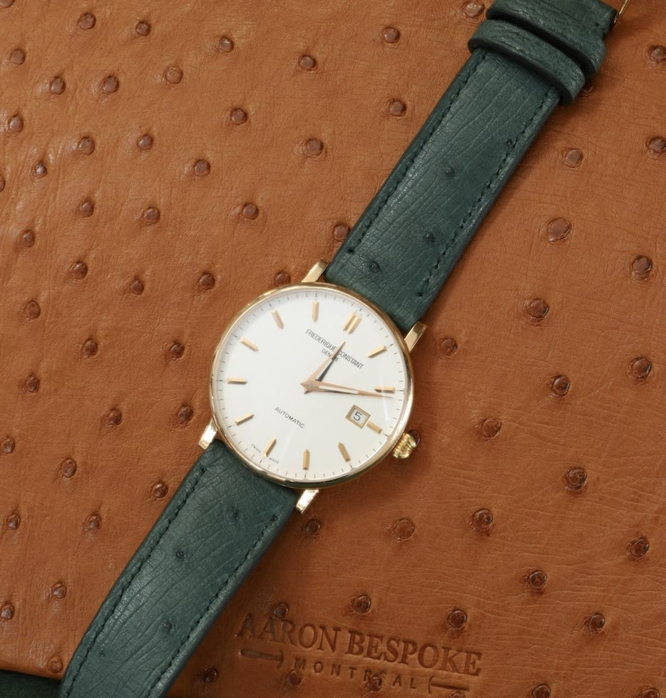 Aaron Bespoke is a small Montreal-based leather workshop that makes custom watch straps from materials like alligator and stingray skin. Since the straps are made to order, you’re not choosing from a fixed catalog.