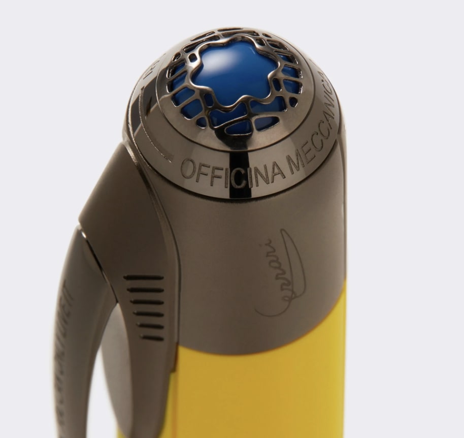 The Giallo Modena color is Ferrari’s second soul after red, and if you know, you know. The shape references classic Ferrari race cars, and the details go deep, from the engraved steering wheel on the nib to the quotes etched onto the pen.